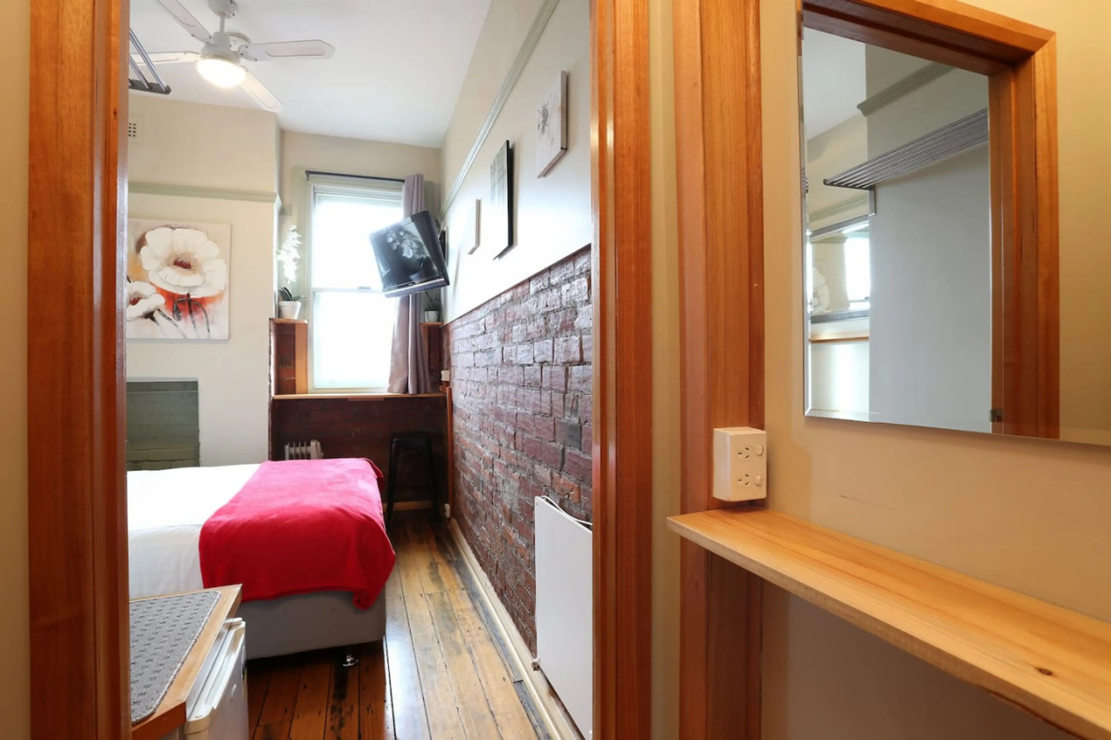 QUEEN BED - A VERY SMALL SUITE (ONLY 14 Square Meters) with ensuite, 32” flat screen, small fridge; coffee/tea supplied. (N0 KITCHEN) Be part of the vibrant North Hobart strip restaurants & bars. Feel the atmosphere & ambiance be part of the action. So if you are looking for a vibrant happening pl...